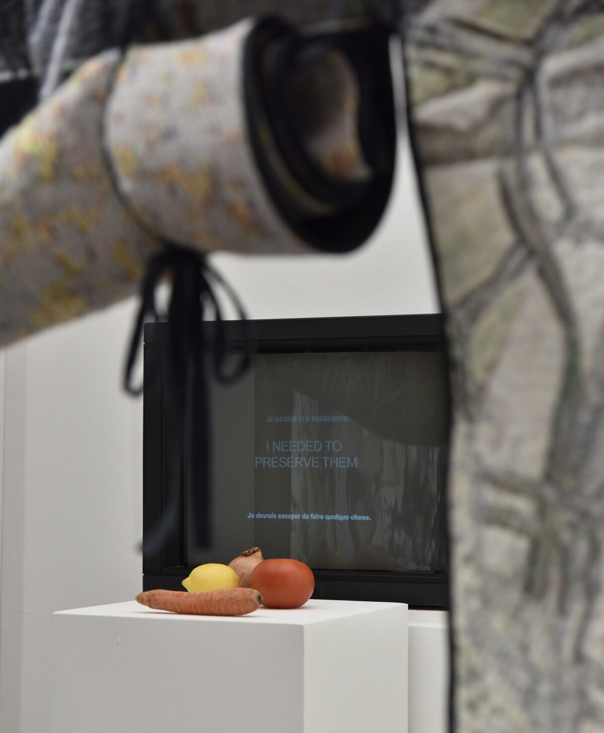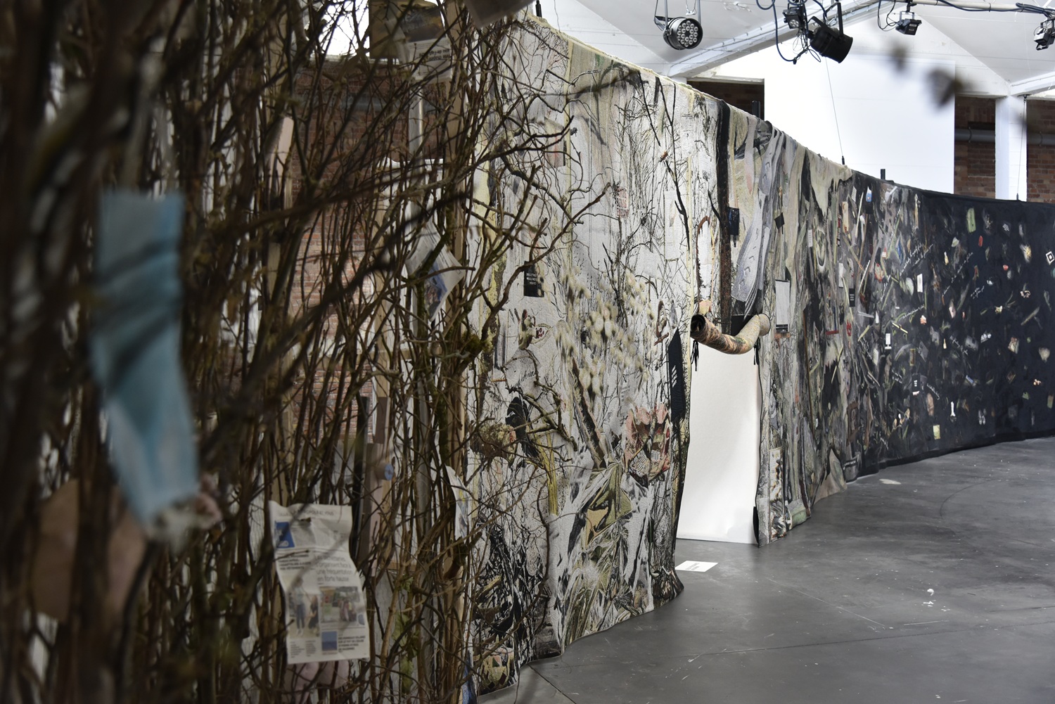 This installation by Laure Prouvost is an invitation to escape, both geographically and psychologically. It depicts an abandoned place, littered with rubbish, where nature reclaims its rights. We wander along a winding path, punctuated by absurdly poetic notes, like little handwritten tweets etched into the canvas.