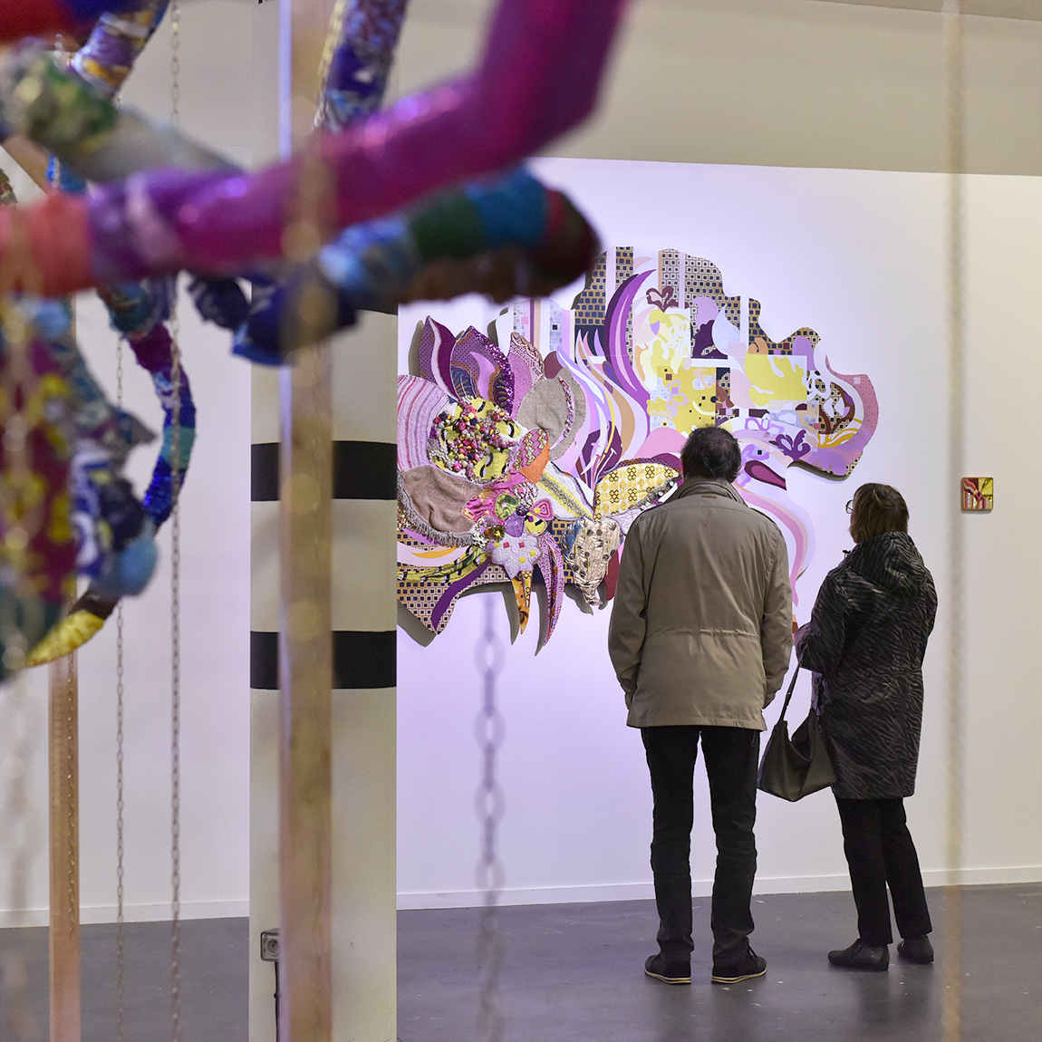 Echos aux enchevêtrements complexes de la nature, à l’énergie contagieuse du carnaval, aux univers bigarrés des marchés, les ornements dans l’œuvre de Stéphanie Laleuw se démultiplient, prolifèrent, s’entremêlent, s’échappent de la toile, pour finalement occuper l’espace tout entier.